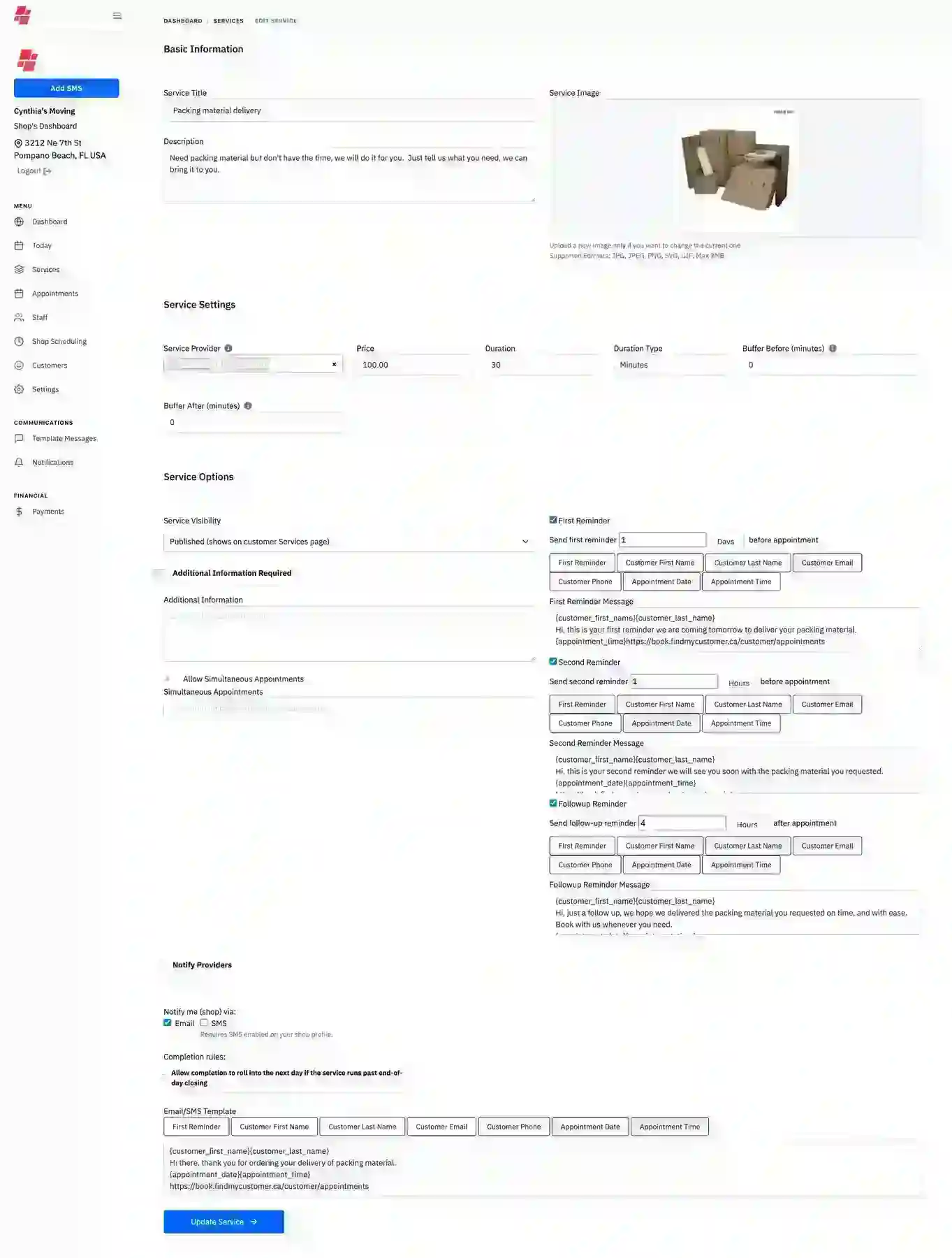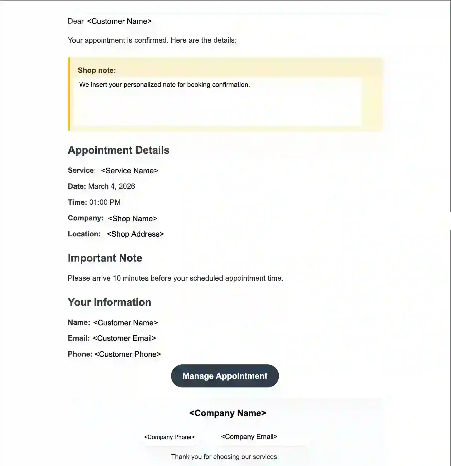 By default, your shop email address receives notifications when an appointment is created, changed, or cancelled.