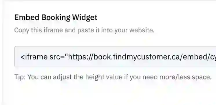 At the bottom, copy your website widget code or share the hosted booking link if you do not have your own site.