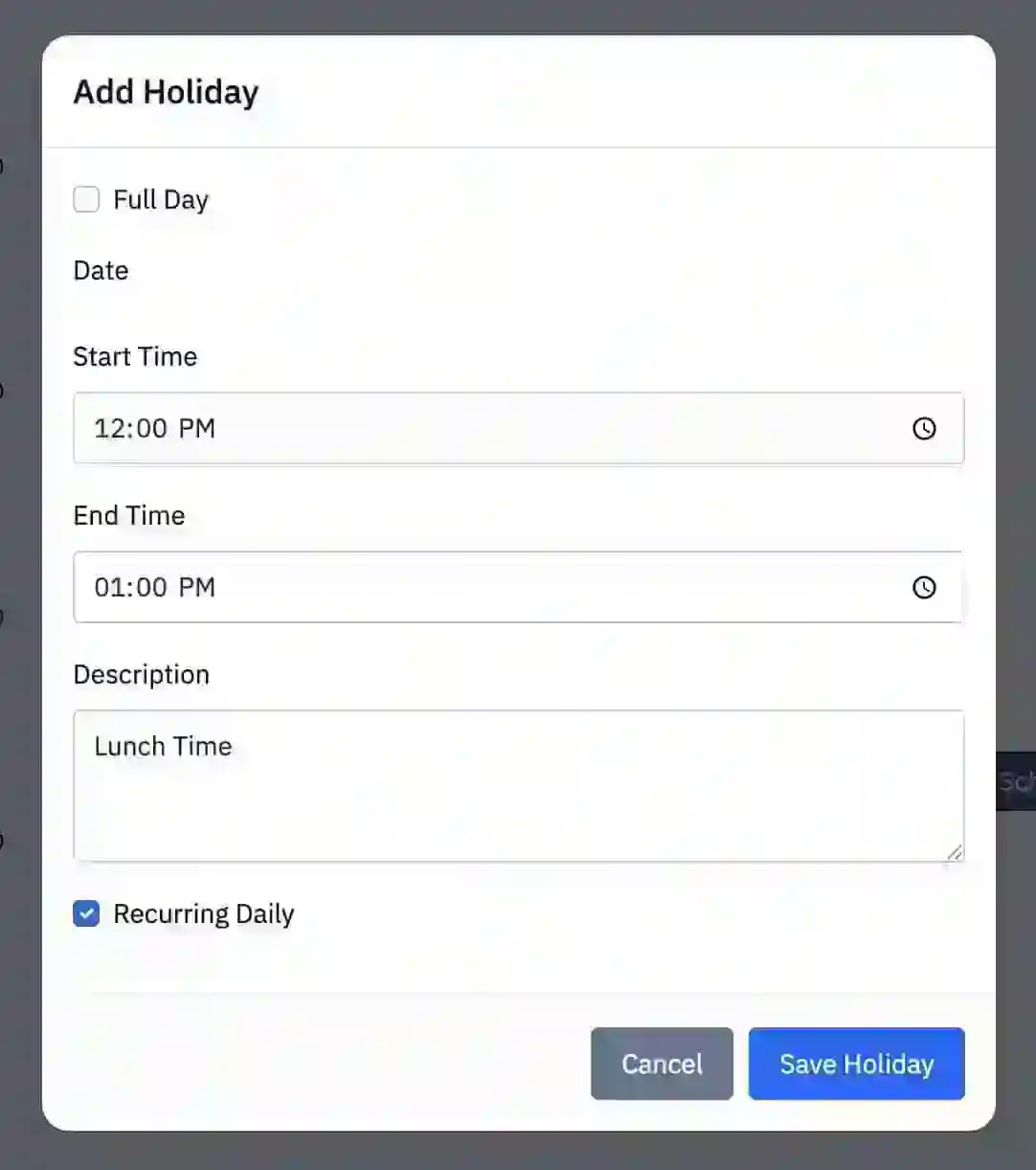 Use recurring blocks for lunch, weekly meetings, or repeated unavailability.
