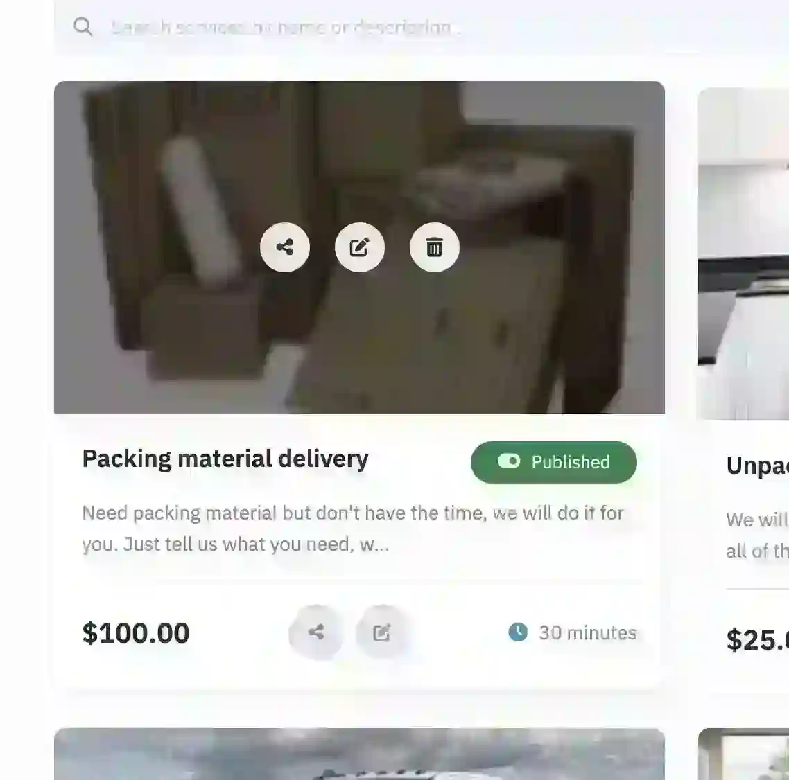 Once saved, you can share the service link, edit the service, or move it to the trash. After your first service is ready, you can begin booking from the Today page or monitor new bookings through Appointments.