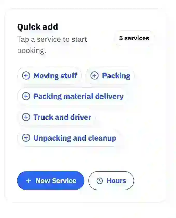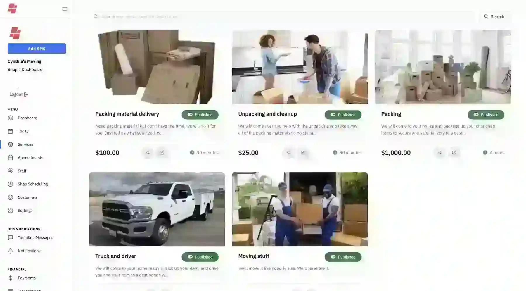 This is where you define what your customers can book. Services combine the business details from Settings, the availability from Shop Scheduling, and the providers from Staff. Press Add Service to start.