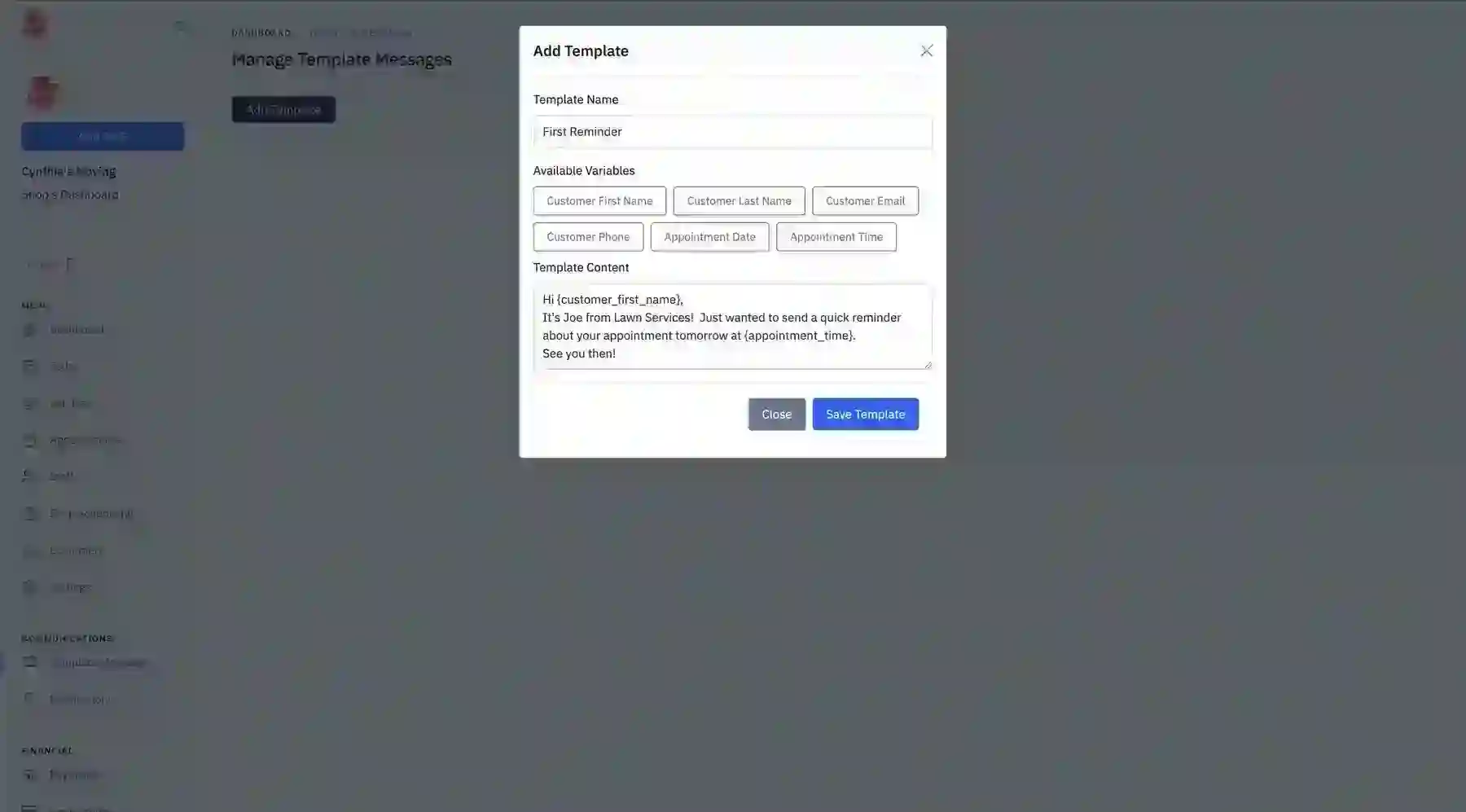 Template Messages are used during service creation when you want reusable, pre-written text for customer messaging. This saves time and helps your communication stay consistent across reminders and confirmations.